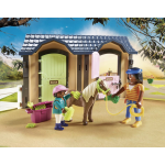 Deze speelset bevat drie PLAYMOBIL-figuren, een paard, een pony, een kat en een muis, evenals twee stalboxen, hekelementen en poortdeuren. Daarnaast zijn er ook een zadel, halster en diverse accessoires voor paardenverzorging inbegrepen. De meegeleverde labels zijn beschrijfbaar en kunnen eenvoudig worden bevestigd aan de staldeuren. De hekken en poortdeuren kunnen naar wens naast elkaar worden geplaatst, waardoor er verschillende speelconfiguraties mogelijk zijn.