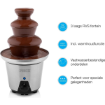Met de Chocoladefontein XL kun je eindeloos variëren! Maak heerlijke chocoladelollies door aardbeien, druiven of ananas aan een prikker te rijgen en deze vervolgens in de chocolade te dippen. En wat dacht je van stroopwafels, mariakaakjes of marshmallows? Dit zijn slechts enkele ideeën, want met deze chocoladefontein kun je jouw traktaties zo feestelijk maken als je zelf wilt!