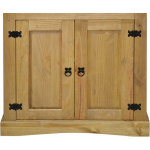 Stijlvolle en rustieke wandkast in Mexicaanse Corona-stijlVoeg een vleugje Mexicaanse charme toe aan je woonkamer, eetkamer of hal met deze hoogwaardige houten wandkast. Het gewaxte grenenhout met zwart metalen details straalt een rustieke uitstraling uit, die direct de aandacht trekt. Deze kast is niet alleen functioneel, maar ook een prachtig decoratief stuk dat je interieur naar een hoger niveau tilt.Gemaakt van duurzaam... lees meer over dit product