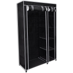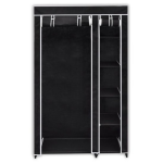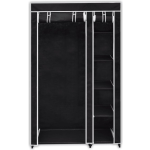 Gemaakt met een stevig frame van stalen buizen en een duurzame hoes van fleecehoes, biedt deze kledingkast een solide en betrouwbare opslagoplossing. Het zwarte ontwerp zorgt voor een tijdloze uitstraling die bij elk interieur past. Met afmetingen van 110 x 45 x 175 cm (B x D x H) biedt deze kast voldoende ruimte voor al je kledingstukken.