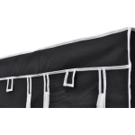 Deze kledingkast is voorzien van een handige roldeur die eenvoudig te bevestigen is met klittenband. Deze deur beschermt je kleding tegen stof en vuil, zodat ze altijd fris en schoon blijven. De ritsen van de kast zijn tevens makkelijk te openen en te sluiten voor moeiteloze toegang tot je kledingcollectie.