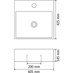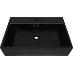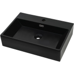Deze wastafel is vervaardigd van hoogwaardig keramiek, waardoor het duurzaam en bestand is tegen dagelijks gebruik. De zwarte kleur geeft een moderne en luxe uitstraling aan je badkamer. Met afmetingen van 60,5 x 42,5 x 14,5 cm (L x B x H) biedt de wastafel voldoende ruimte voor al je behoeften. Het afvoergat heeft een diameter van 4,5 cm, waardoor het water efficiënt wegloopt.