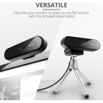 Dankzij de plug-en-play-installatie is de TYRO FULL HD - Webcam zeer gebruiksvriendelijk. Zodra je de USB-ontvanger hebt aangesloten op je pc of laptop, kun je direct aan de slag. Deze webcam is compatibel met Zoom, Teams, Skype en andere bekende software voor videobellen. Of je nu de webcam wilt klemmen op je monitor, eenvoudig op je bureau wilt plaatsen of zelfs op het meegeleverde statief wilt monteren, de TYRO biedt tal van plaatsingsopties voor elke situatie.