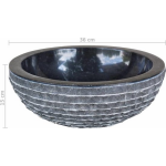 Deze marmeren wastafel wordt geleverd in de kleur zwart en heeft een totale diameter van 40 cm en een hoogte van 15 cm. Het afvoergat heeft een diameter van 4,5 cm. Houd er rekening mee dat de kraan niet bij de levering is inbegrepen.
