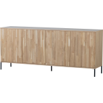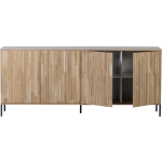 Het Noordwijk dressoir is een modern en stijlvol meubelstuk dat perfect past in elk interieur. Met de plissépatronen op de deuren creëert dit dressoir een sfeervol lijnenspel. Het dressoir is onderdeel van de New Gravure serie van Woood en is gemaakt van eikenhout in een naturel kleur. Achter de vier deuren vind je legplanken die op verschillende hoogtes geplaatst kunnen worden. Het interieur van de kast is van mist grijs spaanplaat. Het dressoir staat op zwarte metalen poten van 15 cm hoog.