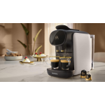 Met de Philips LM9012/00 koffiezetapparaat geniet je op elk moment van de dag van sterke espresso's en heerlijke ristretto's. Dit apparaat is compatible met zowel L'OR Espresso- als L'OR Barista-capsules en biedt de mogelijkheid om de hoeveelheid koffie naar wens aan te passen. Met het L'OR Barista-systeem kunnen twee kopjes espresso tegelijkertijd gezet worden, of één dubbel kopje koffie in één kopje. Daarnaast kun je ook genieten van andere koffievarianten zoals lungo's.
