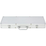 De set wordt geleverd in een stevige aluminium koffer, die gemakkelijk te dragen en op te bergen is. De koffer heeft een kleurrijke en opvallende uitstraling en meet 55,5 x 20,5 x 6,7 cm (L x B x H). Zo heb je altijd alles bij de hand voor een avond vol plezier en spanning.