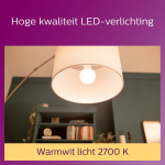 Laat je ogen genieten van comfortabel licht met de Philips LED-lampen, de wereldwijde marktleider in verlichting. Vervang je oude lampen door deze energiezuinige LED-lampen en bespaar tot €30 op energiekosten per jaar. Ze verbruiken tot 90% minder energie dan gloei- en halogeenlampen dankzij de nieuwste LED-technologie. Bovendien gaan ze tien keer langer mee. Met EyeComforttechnologie zorgen deze lampen voor aangenaam licht voor je ogen. De E27-fitting maakt ze geschikt voor de meeste lampen met een grote fitting.Hoogwaardig licht