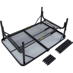 Naast zijn stijlvolle design is deze tafel ook zeer praktisch. Het handige net onder het tafelblad biedt extra opbergruimte voor al jouw benodigdheden. En dankzij de handige draaggreep is deze tafel gemakkelijk te vervoeren, zodat je altijd kunt genieten van comfort en gemak, waar je ook bent.
