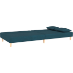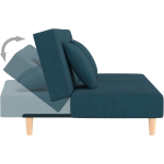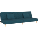 Met zijn moderne design past deze slaapbank perfect in elke woonomgeving. De blauwe fluwelen bekleding (100% polyester) voegt een vleugje elegantie toe aan het geheel. De bank heeft de volgende afmetingen: 200 x 84,5 x 69 cm (L x B x H) en een zitdiepte van 50 cm. De zitting is 15 cm dik en de zithoogte vanaf de grond is 32 cm. De rugleuning kan volledig omhoog worden gezet tot een hoogte van 69 cm, of half omhoog tot 56 cm. De rugleuning is 12 cm dik en de voethoogte is 15 cm.