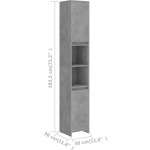 Vidaxl Badkamerkast 30x30x183,5 Cm Spaanplaat Beton - Grijs