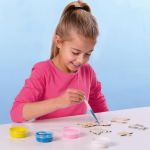 Met de Marble Art knutselset maak je prachtige creaties met een marmer effect helemaal zelf. Je kunt de houten vormen versieren met vier kleuren marble verf en met de meegeleverde cocktailprikkers het marmer effect toevoegen. Door de cocktailprikker volgens bepaalde patronen door de natte verf te trekken, ontstaan er leuke figuurtjes. Dit is echt gaaf om te doen!