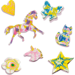Met de leuke SES Marble Art set kun je verschillende figuren maken, zoals een paard en een vlinder. Het proces is eenvoudig: gebruik de pipetten om de kleuren verf op het figuur aan te brengen en volg de instructies om het marmer effect te creëren. Laat de verf drogen en bewonder het resultaat!