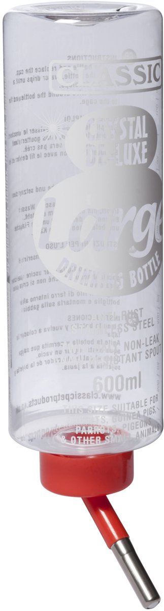 Sinds 1975 is deze doorzichtige drinkfles de favoriet onder knaagdierbezitters over de hele wereld. Gemaakt van duurzaam kunststof is deze fles zeer geschikt voor verschillende soorten knaagdieren, waaronder konijnen, fretten, chinchilla's, ratten, cavia's, hamsters en muizen. De fles is eenvoudig te vullen, op te hangen en te reinigen. Alle onderdelen zijn volledig recyclebaar en vervaardigd uit hoogwaardig PET-kunststof. Zelfs landbouwdieren zoals paarden, varkens en kippen kunnen gebruikmaken van de Giant flessen.