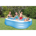 Het Intex opblaasbare zwembad Beach Wave heeft een stijlvolle blauwe kleur en een unieke golfvorm. Met afmetingen van 229 x 229 x 56 cm (L x B x H) biedt het zwembad voldoende ruimte voor jou en je kinderen om comfortabel te kunnen bewegen. Het heeft een capaciteit van 1.250 liter water, wat ervoor zorgt dat je urenlang kunt genieten van heerlijk verkoelend water.
