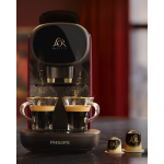 Maak kennis met de nieuwe Philips L'OR Barista LM9012/50 koffiecupmachine van L'OR Espresso. Deze machine biedt oneindig veel koffievariaties en is compatibel met verschillende merken capsules, waaronder L'OR Espresso, Nespresso® (met uitzondering van Nespresso® Vertuo),Starbucks en nog veel meer. Met het exclusieve systeem voor dubbele shots van L'OR Barista kun je twee espresso's tegelijk zetten of een dubbele espresso in één kopje. Met één druk op de knop geniet je van een ristretto, espresso of lungo, en dankzij de instelbare lekbak kun je ook grote mokken of latte macchiato-glazen gebruiken.Echte espressokwaliteit in een handomdraai
