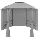 Vidaxl Tuinpaviljoen Met Gordijnen Hexagonaal 360x265 Cm - Grijs