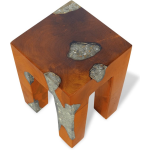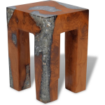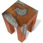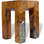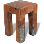 De kruk heeft een meerkleurige afwerking en is gemaakt van massief teakhout met een doorzichtige lak en transparante hars met fijn glas. De afmetingen van de kruk zijn 30 x 30 x 40 cm (L x B x H),waardoor hij perfect past in elke ruimte.