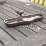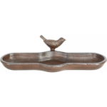 Het vogelbadje heeft een warme bruine kleur die mooi samensmelt met de natuurlijke elementen in je tuin. Met afmetingen van 29,5 x 13 x 7,1 cm (L x B x H) neemt het vogelbadje niet veel ruimte in beslag, maar biedt het toch voldoende ruimte voor de vogels om te drinken, te badderen en te eten.