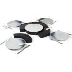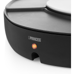 Praktisch en veelzijdig gebruikIn de centrale unit van de Dinner4All Circle kunnen vier bakplaatjes worden aangesloten op het centrale stekkerblok. Met slechts een stekker hoef je vervolgens alleen nog maar verbinding te maken met een stopcontact. De snoerlengte van twee meter zorgt ervoor dat je zelfs geen verlengkabel nodig hebt. Het middenstuk van de unit kan afgedekt worden met de aardewerken serveerschaal, waarop je je favoriete combinaties van vlees, vis en groenten plaatst.Een culinaire ervaring voor elk momentDe Dinner4All Circle bakplaat van Princess is niet alleen geschikt om tijdens de feestdagen uit de kast te halen, maar kan eigenlijk op ieder moment gebruikt worden. Of het nu gaat om een heerlijke zomerse avond met vrienden in de tuin of op het balkon, of zelfs om mee te nemen naar de camping dankzij het lage stroomverbruik van slechts 4 x 250 watt. Gemakkelijk schoon te makenDe antiaanbaklaag op de bakplaten maakt het gebruik van boter of olie overbodig en zorgt ervoor dat er geen etensresten aanbakken. Hierdoor zijn de bakplaatjes eenvoudig te reinigen met keukenpapier en een natte doek.Inclusief alles wat je nodig hebtBij de Princess 103070 Dinner4All Circle worden ook 4 houten spatels en een handleiding meegeleverd, zodat je direct aan de slag kunt met deze unieke funcooking ervaring.