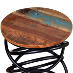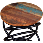 Deze bijzettafel van massief gerecycled hout heeft een sterke retro uitstraling en kan ook dienen als salontafel en woonkamertafel. Dit opvallende meubelstuk zal een echte toevoeging zijn aan elke kamer. Door de verschillen in houtnerf en kleur is elk exemplaar uniek.