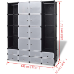 Vidaxl Kast Modulair Met 18 Vakken 37x146x180,5 Cm En Wit - Zwart