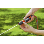 Met de reguleerbare tuinspuit kunt u gemakkelijk de waterstraal aanpassen aan uw wensen. Of u nu een fijne nevel nodig heeft voor delicate planten of een krachtige straal voor het schoonmaken, met de GARDENA Startset heeft u alles onder controle.
