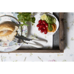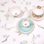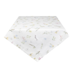Met het Katoen Tafelkleed creëer je in een handomdraai een vleugje lente op tafel. De pastelkleurige bloemen komen prachtig naar voren op het witte kleed, en het bijpassende groene accent zorgt voor een frisse uitstraling. Het tafelkleed, tafellaken, tafelloper en broodmandje samen vormen een perfecte combinatie om elke interieurstijl te complementeren.