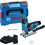 De Bosch Professional GST 12V-70 Decoupeerzaag op AccuDe Bosch Professional GST 12V-70 decoupeerzaag op accu is de ultieme keuze voor professionals die op zoek zijn naar een compacte en wendbare zaag in de 12V-klasse. Dankzij de staafgreep en het lichte ontwerp biedt deze decoupeerzaag ongeëvenaarde wendbaarheid, zelfs bij het zagen vanaf de onderkant.De greep van de decoupeerzaag is strategisch geplaatst dichtbij de zaaglij... lees meer over dit product