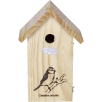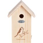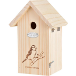 Het ingebrande silhouet en de Latijnse naam maken duidelijk dat deze nestkast speciaal ontworpen is voor de pimpelmees. Maar ook de kuifmees, glanskop, matkop en zwarte mees voelen zich thuis in deze op maat gemaakte nestkast. Met een sleutelgatopening, een deur aan de zijkant en een vliegopening van 27 mm diameter, voldoet deze nestkast aan de behoeften van deze vogelsoorten.