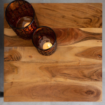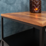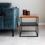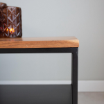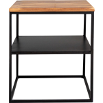 Het blad van de Rafael is vervaardigd uit hoogwaardig mangohout en heeft een prachtige, zichtbare houtstructuur. Dit geeft de tafel een stoere en levendige uitstraling. Het mangohout heeft een lichte basiskleur met warme accenten. Het frame van het nachtkastje is gemaakt van zwart gepoedercoat staal, wat perfect past bij de industriële woonstijl en het houten blad.