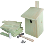 Wat is er nou leuker en educatiever dan van dit bouwpakket je eigen vogelhuis/nestkast te maken? Met de meegeleverde spijkers, hamer en houtlijm is het nestkastje geheel in elkaar te spijkeren en deels te verlijmen. Deze nestkast is speciaal ontworpen voor de koolmees, maar je kunt ook de pimpelmees, ringmus en bonte vliegenvanger verwachten in deze kast. De afmetingen van de hamer zijn 16 x 8 x 1,5 cm, terwijl het nestkastje zelf een formaat heeft van 15 x 15 x 23 cm. In de cadeaudoos meet het 19 x 10 x 24 cm.