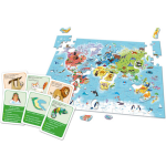Deze puzzel biedt niet alleen een visueel overzicht van onze wereld, maar bevat ook informatiekaarten waarmee je kind de dieren kan classificeren en meer kan leren over hun leefomgevingen. Door het leggen van de puzzel worden niet alleen de geografievaardigheden van je kind versterkt, maar wordt ook de nieuwsgierigheid gewekt om meer te weten te komen.
