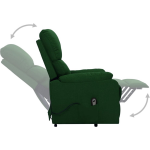 De rugleuning en voetensteun van deze sta-op-stoel zijn verstelbaar, zodat je altijd de meest comfortabele positie kunt vinden. Bovendien kan de hoogte van de zitting worden aangepast aan de lengte van verschillende gebruikers met behulp van de handbediening. Het donkergroene stoffen bekleding voelt niet alleen zacht en luxueus aan, maar is ook gemaakt van 100% polyester voor extra duurzaamheid.