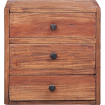 Met zijn opvallende design en 3 handige lades, biedt dit nachtkastje de perfecte oplossing om je spullen georganiseerd te houden. Het is gemaakt van massief gerecycled hout afkomstig van verschillende bronnen, zoals omgevallen bomen, houten vrachtwagens, boten en oude gebouwen. Dit betekent dat elk stuk uniek is en de rijke geschiedenis van het hout weerspiegelt.