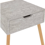 Dit nachtkastje beschikt over een eigentijds ontwerp met een betongrijze afwerking, waardoor het een trendy en moderne uitstraling heeft. Het past perfect bij elke interieurstijl en voegt een vleugje charme toe aan je slaapkamer. Met de afmetingen van 40 x 40 x 56 cm neemt het nachtkastje niet veel ruimte in beslag en past het gemakkelijk naast je bed.