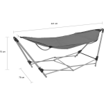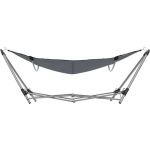 De hangmat wordt geleverd met een inklapbare standaard, zodat je deze overal kan plaatsen zonder dat je afhankelijk bent van bomen of palen. De hangmat is beschikbaar in een elegante grijze kleur en heeft de afmetingen van 241 x 76 x 70 cm (L x B x H).
