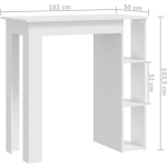 De bartafel heeft een stijlvolle witte kleur en is gemaakt van hoogwaardig spaanplaat. De afmetingen van 102 x 50 x 103,5 cm (B x D x H) zorgen ervoor dat de tafel perfect past in elke ruimte. Let op: om eventueel kantelen of omvallen te voorkomen, moet dit product met bijgeleverde materialen aan de wand gemonteerd worden.