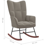 Onze schommelfauteuil met voetenbank is gemaakt van hoogwaardige materialen. De zachte fluwelen stof (100% polyester) voelt zacht aan en geeft een luxe uitstraling aan de stoel. Het massief rubberwood, staal en schuim van hoge kwaliteit zorgen samen voor een stevige en comfortabele zitervaring.