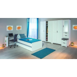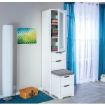 Till Kledingkast 1 Spiegeldeur, 4 Laden, Zitkussen. - Wit