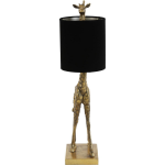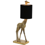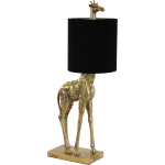 Prachtige Gouden Giraffe Tafellamp voor een Dierlijk AccentGeef je interieur een unieke en speelse twist met deze prachtige gouden giraffe tafellamp. De giraffe steekt op elegante wijze boven de zwarte velvet lampenkap uit, die overigens inbegrepen is! Of je nu een bijzettafel of een sidetable hebt, deze lamp past perfect in je woon- of slaapkamer. Met afmetingen van 26x16x61 cm is deze lamp een opvallend decoratief element d... lees meer over dit product
