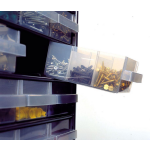 Wat deze ladekast zo uniek maakt, is het feit dat je de laden kunt indelen met behulp van los verkrijgbare tussenschotjes. Zo kun je precies de indeling creëren die het beste bij jouw behoeften past. Daarnaast zijn de lades transparant, waardoor je in één oogopslag kunt zien wat er in elke lade zit. Dit bespaart je kostbare tijd en moeite bij het zoeken naar de juiste materialen.