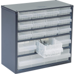 De Stevige metalen ladekast van Raaco is de perfecte oplossing voor het opbergen van kleinere materialen in je werkplaats, hobbyruimte of garage. Met 16 slagvaste polypropyleen laden biedt deze ladekast voldoende ruimte om al je schroeven, pluggen, spijkers en andere kleine onderdelen netjes te ordenen.