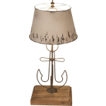 Clayre & Eef Tafellamp Ø 35*79 Cm Creme, Bruin Hout, Ijzer Bureaulamp Nachtlampje Creme Bureaulamp Nachtlampje - Beige