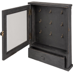 Dit sleutelkastje is niet alleen functioneel, maar ook stijlvol. Het zwarte hout en glas geven het kastje een landelijke uitstraling die goed past bij verschillende interieurstijlen. Hang je sleutels georganiseerd op en je hebt ook nog eens een mooi kastje om naar te kijken. Zet het kastje in de hal neer, zodat je snel je sleutels kunt pakken voor je de deur uit gaat.