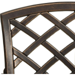 Deze bistroset is gemaakt van hoogwaardig weerbestendig gietaluminium, waardoor je jarenlang plezier hebt van deze set. De stoelen zijn voorzien van hoge rugleuningen en zittingen met een hol design voor maximaal comfort. Daarnaast zorgen de ergonomisch gebogen armleuningen voor een effectieve ontspanning van je armen. Het stevige tafelblad met prachtige patronen biedt voldoende ruimte om je drankjes, snacks en andere spullen neer te zetten.