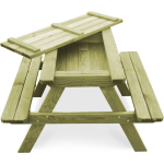 Deze tuinset is gemaakt van hoogwaardig geïmpregneerd grenenhout, waardoor hij duurzaam, weerbestendig en rotbestendig is. Hierdoor kan de set jarenlang mee en blijft hij er mooi uitzien, zelfs onder verschillende weersomstandigheden. Daarnaast is er een grote opslagruimte onder het tafelblad, waardoor je kleine spullen georganiseerd kunt houden.
