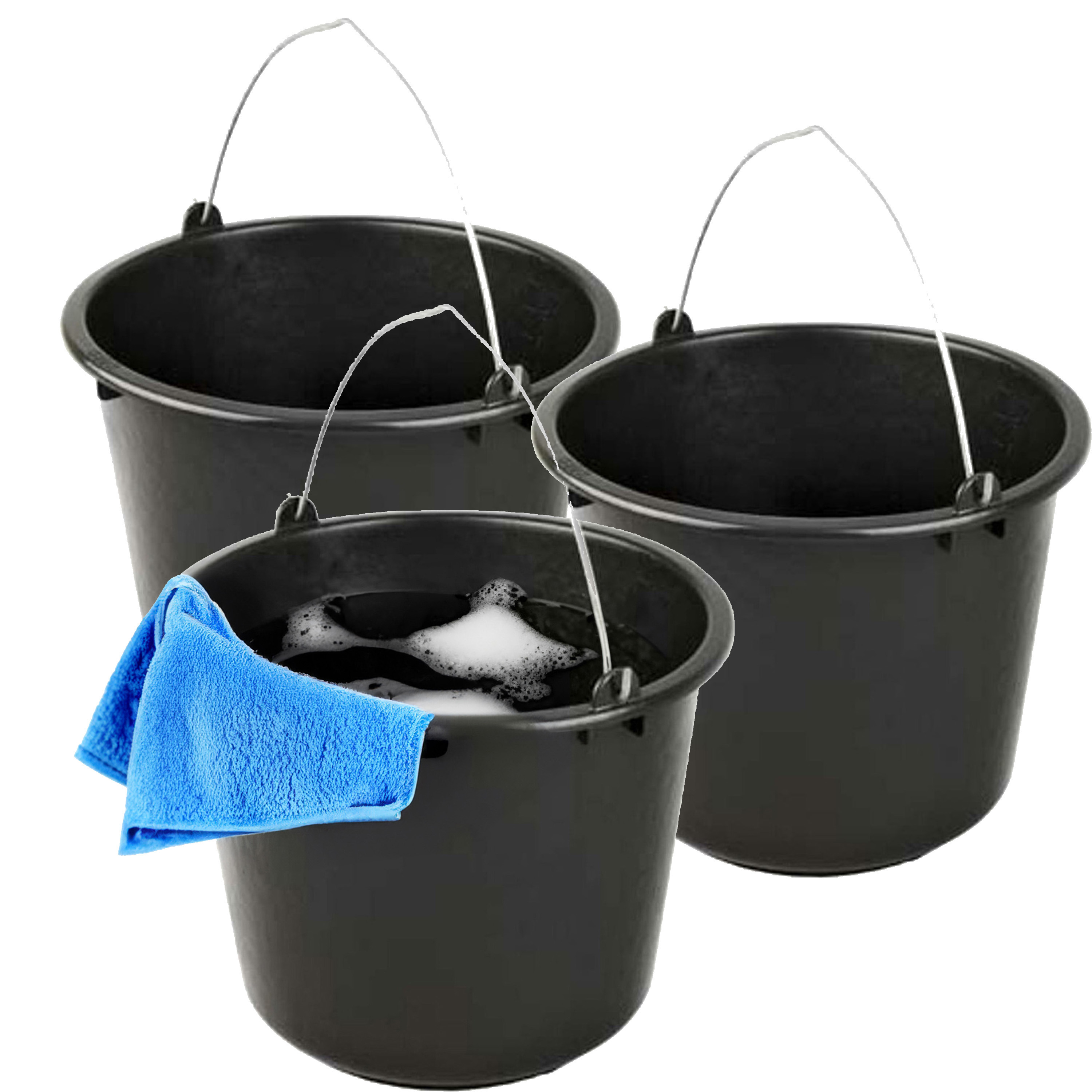 5x Stevige Huishoud Emmers 12 Liter - Bouwemmer - Schoonmaak Emmer - Zwart