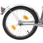 De fietsbagagetrailer heeft een opvallend ontwerp in de kleuren oranje en zwart, waardoor je gegarandeerd de aandacht trekt tijdens je fietstochten. Met een totale afmeting van 151 x 43 x 40 cm (L x B x H) en een hoofdgedeelte van 111 x 43 cm (L x B),biedt de trailer voldoende ruimte voor al je bagage. Bovendien is de trailer uitgerust met wielen van 38,5 cm met snelkoppeling, 2 wielreflectoren voor extra veiligheid en een handige veiligheidsvlag.