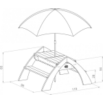 Met de afmetingen van 119 x 98 x 65 cm (zonder parasol) en 160 x 160 x 180 cm (met parasol),biedt deze tafel voldoende ruimte voor meerdere kinderen om samen te spelen. De tafel is stevig en duurzaam gebouwd, zodat uw kinderen er lang van kunnen genieten.
